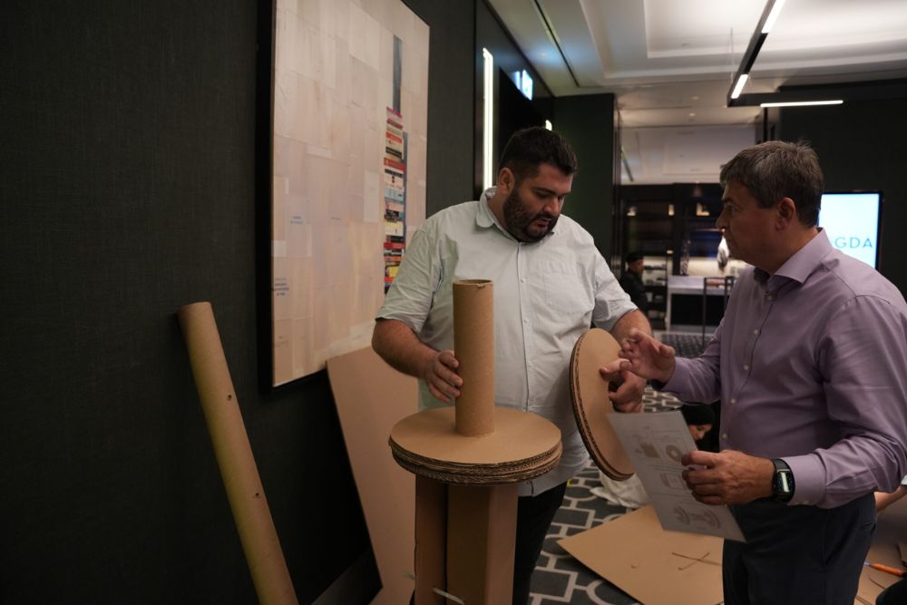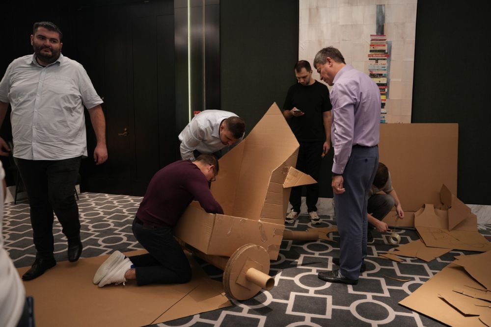 Step into the arena! Teams are formed, icebreakers get the energy flowing, and your host sets the stage for a challenge full of creativity, coordination, and just a little cardboard madness.
