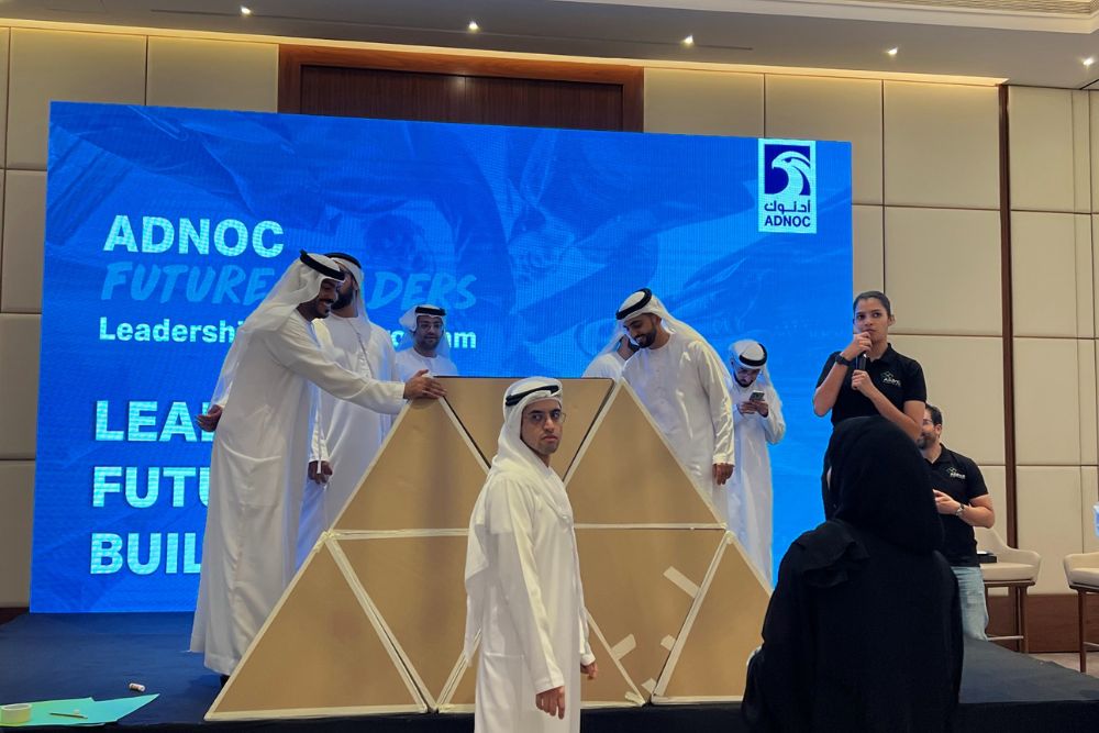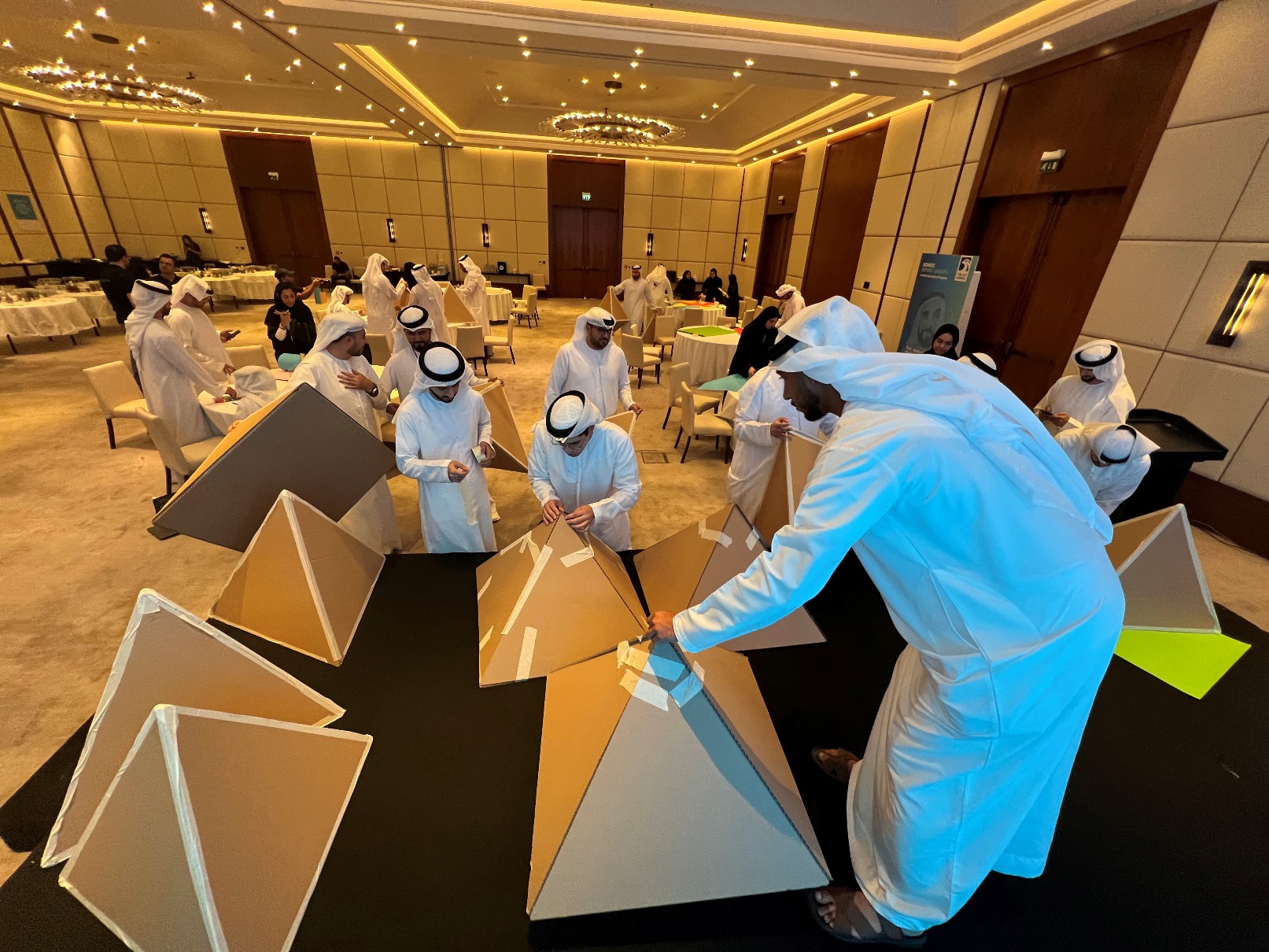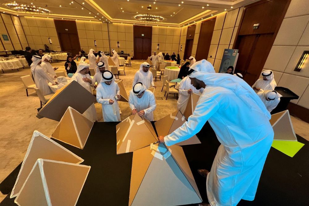 Welcome to the Giant Pyramid Challenge! Teams are formed, spirits are lifted with quick icebreakers, and your host sets the scene for a unique building mission — where every team holds a piece of the big picture.