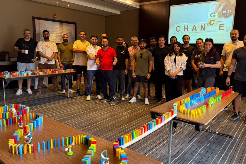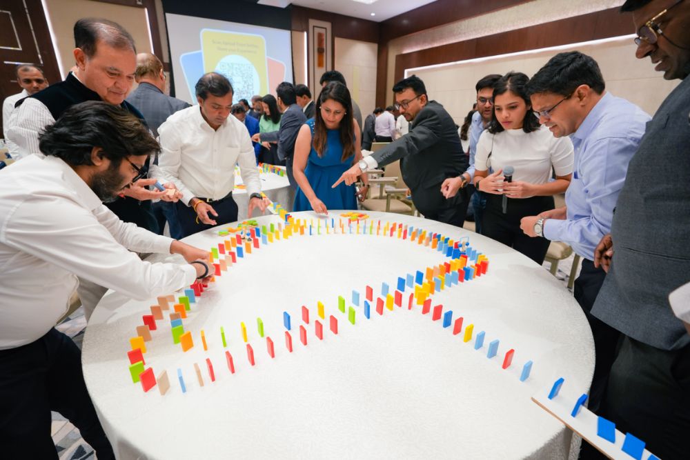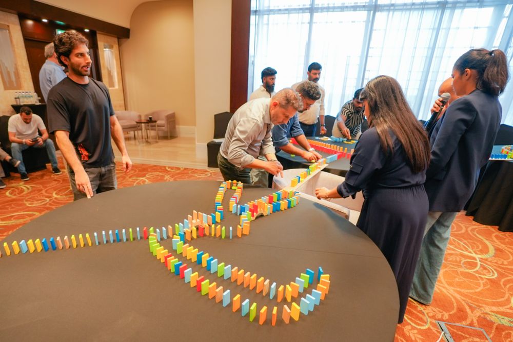 The rally begins with a quick hello and a fun warm-up to spark creativity. Each team gets domino chips and a clear mission: build a domino rally that’s as clever as it is connected. Everyone’s in — thinkers, builders, fixers, toppers.