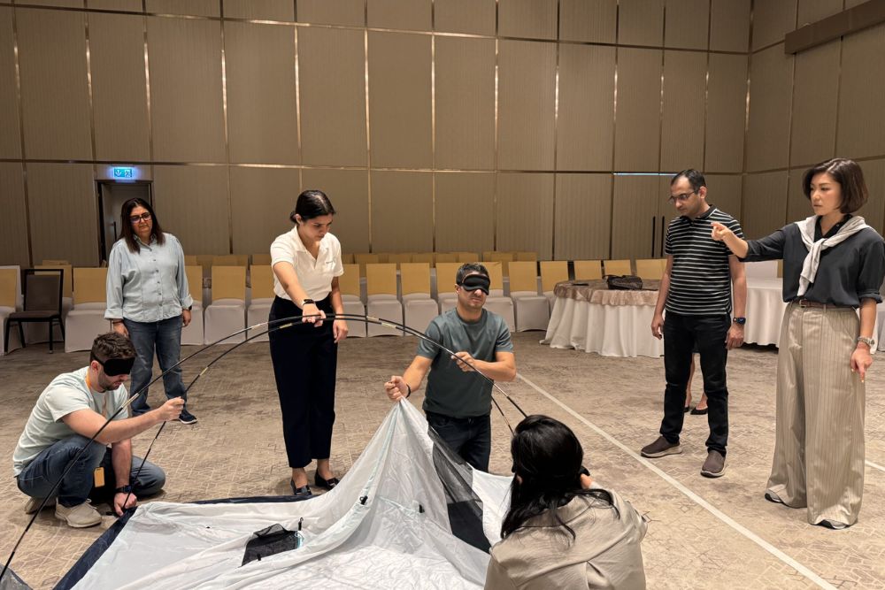 An exciting team-building activity that focuses on trust, communication, and collaboration. Teams work together to build a tent, but there’s a twist—half the team members are blindfolded while the others guide them. It’s a powerful and fun way to learn empathy, leadership, and teamwork while facing an engaging challenge.